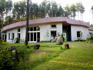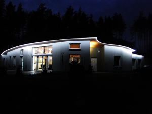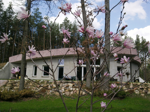 Cały budynek, dobrze izolowany, ogrzewany pompą ciepła z poziomym kolektorem ziemnym i kominkiem o podwyższonej temperaturze spalania oraz z zastosowanym w wentylacji rekuperatorem jest bliski ideałowi domu pasywnego.